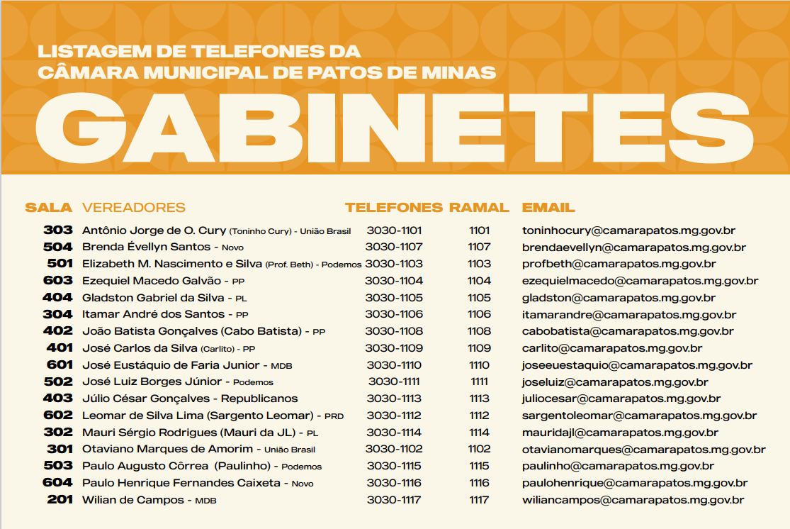 Listagem de Telefones da Câmara Municipal de Patos de Minas