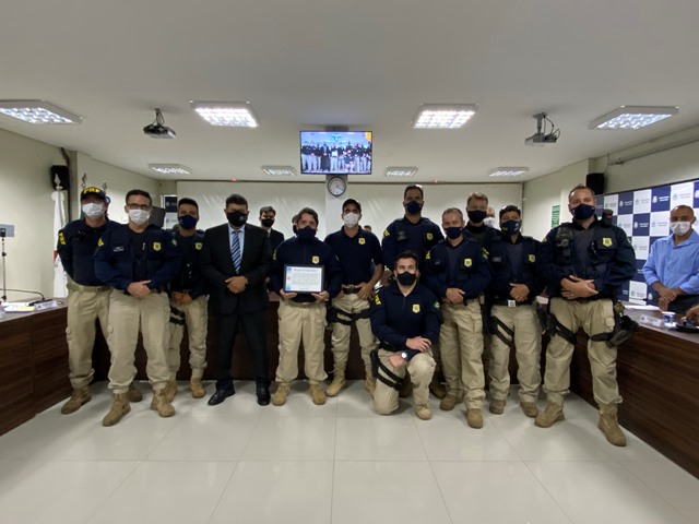 Policiais Rodoviários Federais integrantes da 10ª Delegacia de Polícia Rodoviária Federal em Patos de Minas – MG, pelos notórios serviços prestados de atuação assídua de combate ao narcotráfico e demais ilícitos penais, especialmente pelas ações repressivas que resultaram na apreensão de diversas toneladas de drogas na região, em 2020 e 2021.