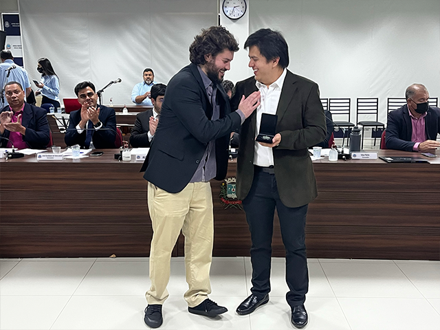 E, assim, o trabalho de André e o da família Nakao no cultivo e beneficiamento de cafés especiais tornou-se uma referência mundial, o que tem contribuído para colocar Patos de Minas e região em grande destaque no cenário do agronegócio. Portanto, é com grande alegria que esta Casa Legislativa outorga agora a André Mazzi Nakao a merecida Medalha de Destaque Rural “Dr. Moacir Viana de Novaes”.