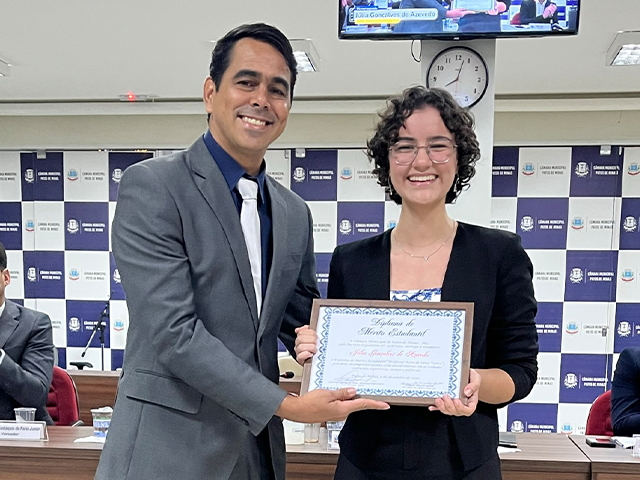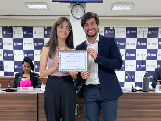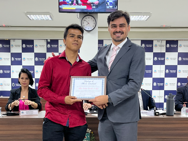 Durante a cerimônia, o vereador/presidente, Ezequiel Macedo, enalteceu o significado da homenagem. “O diploma tem a importante missão de valorizar os nossos jovens estudantes que têm feito a diferença em nosso Município e de incentivá-los para a busca permanente do aprendizado”, destacou.