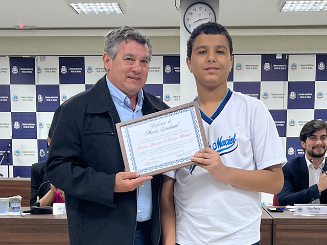 A Câmara Municipal de Patos de Minas outorgou, nessa terça-feira (6/12), o Diploma de Mérito Estudantil “Professor René de Deus Vieira” a 13 estudantes do Município que se destacam pelo bom desempenho escolar anual e pelo envolvimento em atividades culturais, esportivas, sociais e políticas.
