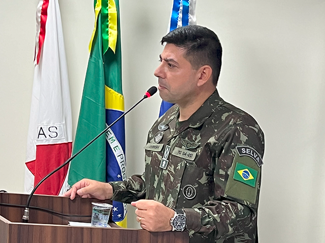 O chefe de Instrução do Tiro de Guerra - TG 04-013, subtenente Jeferson Carreira Garcia Oliveira, fez uso da tribuna livre da reunião ordinária dessa quinta-feira (5/10), para mostrar o trabalho realizado pelo Tiro de Guerra de Patos de Minas e destacar a importância do órgão para o Município.