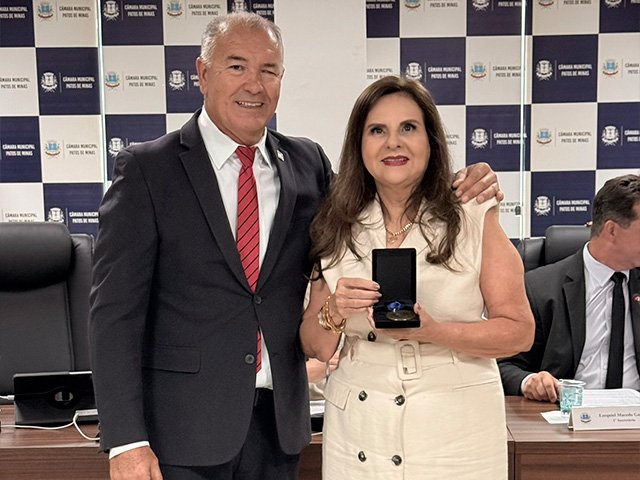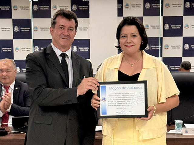 - À Senhora Jorgiane Suelen de Sousa pela destacada atuação à frente da Secretaria Municipal de Desenvolvimento Social, promovendo avanços significativos na assistência social de Patos de Minas e projetando o Município como referência nacional em gestão e inclusão.