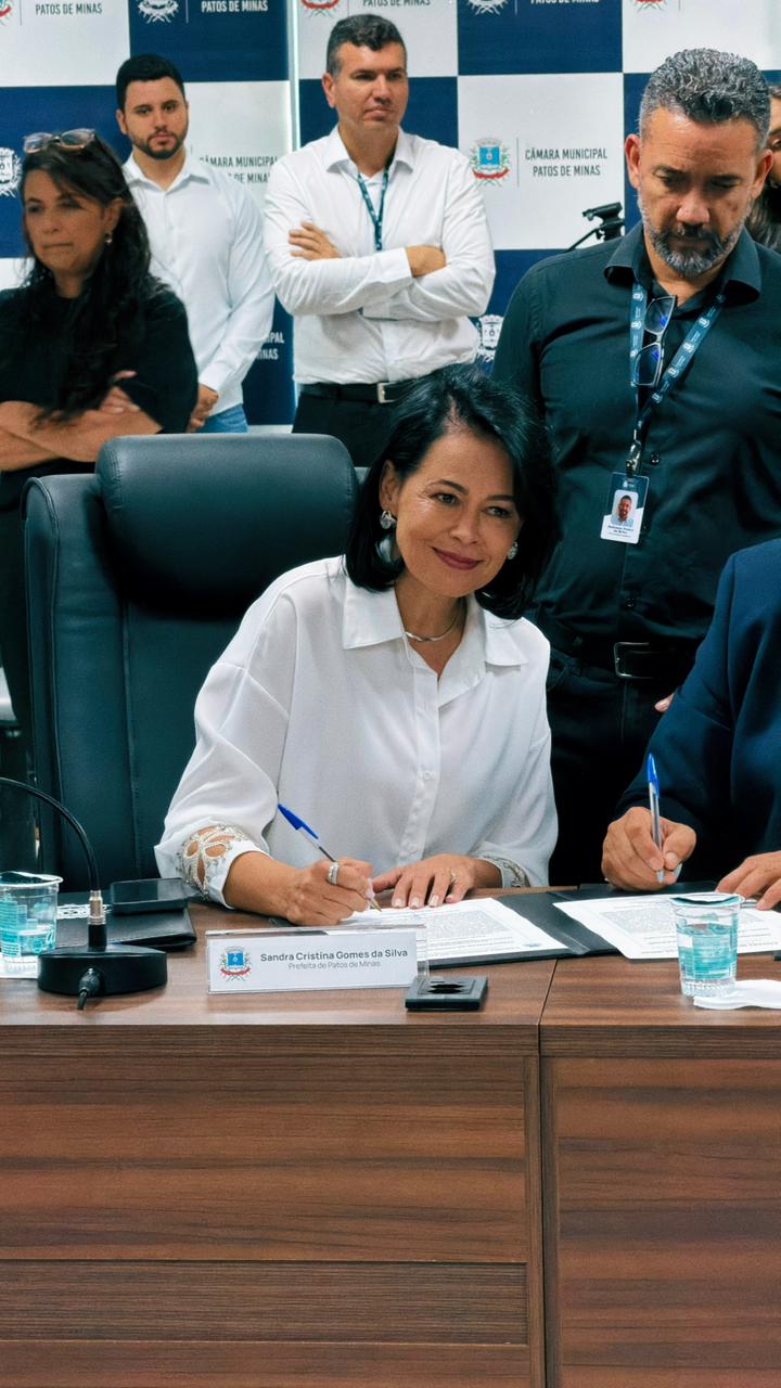 A solenidade marcou oficialmente o início do mandato de Sandra Gomes à frente do Executivo municipal, reafirmando o compromisso institucional com a continuidade administrativa e o desenvolvimento de Patos de Minas.