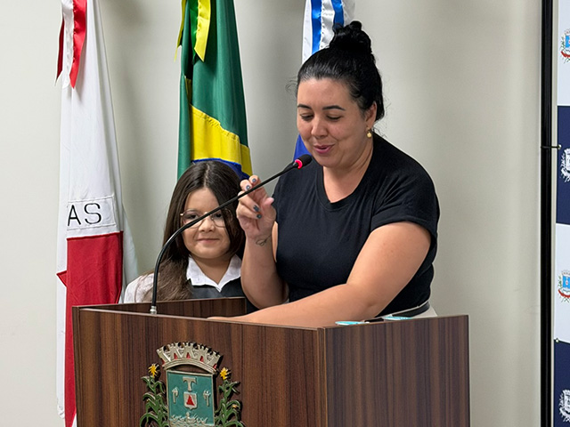 Durante a reunião ordinária, fizeram uso da tribuna livre Mayna Cristy e sua filha, Maya Luísa, respectivamente filha e neta do vereador Itamar André dos Santos.