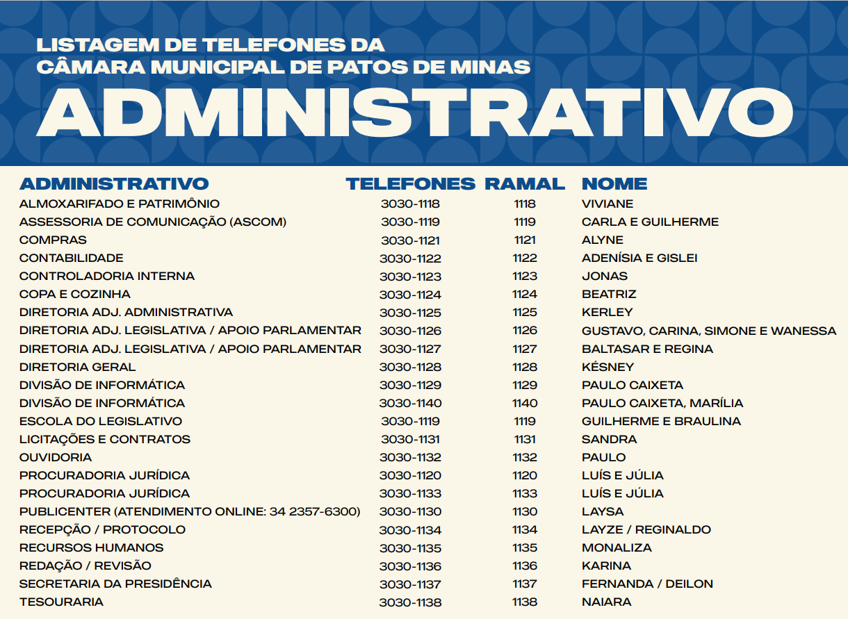 Listagem de Telefones da Câmara Municipal de Patos de Minas