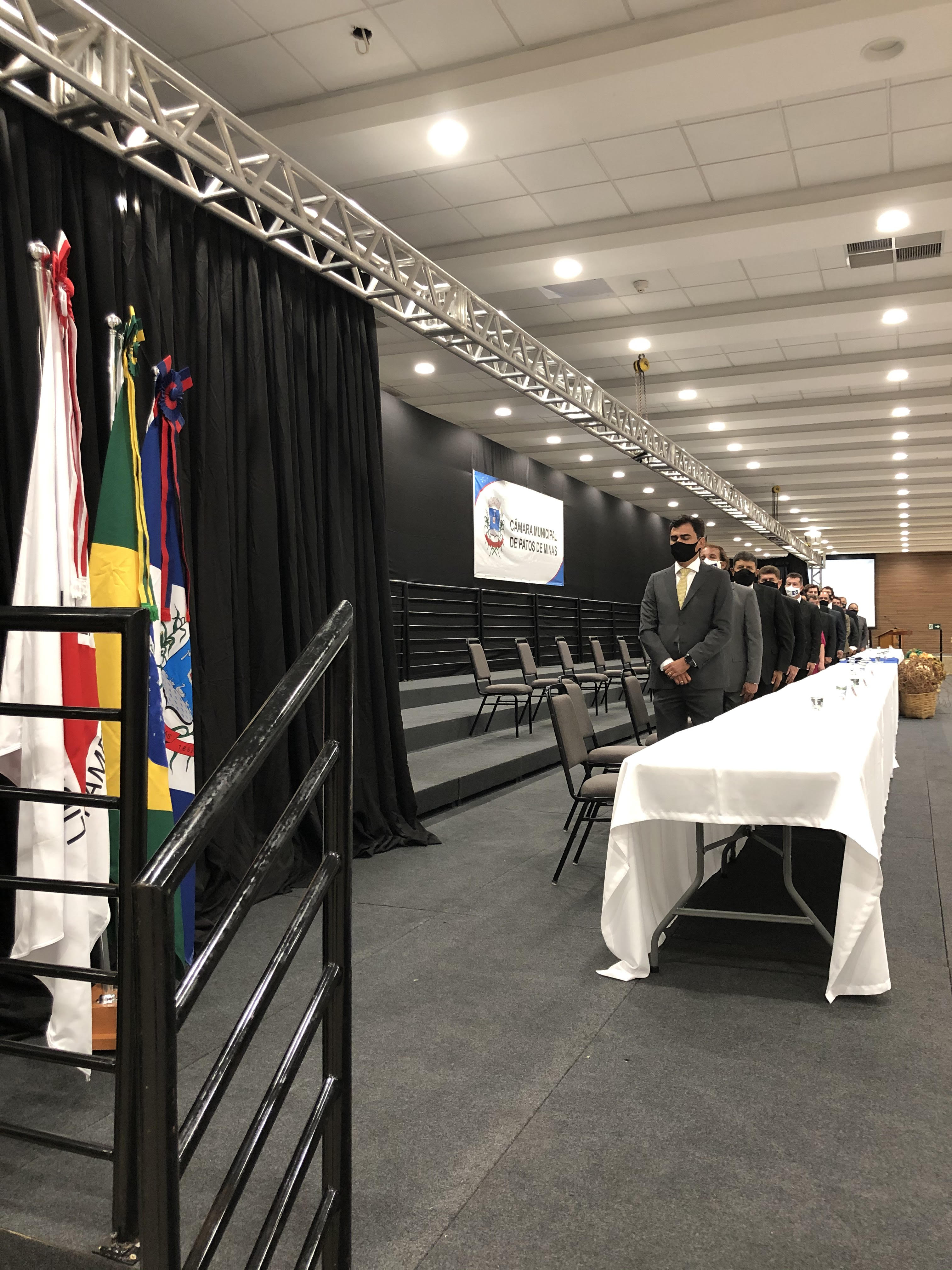 No caso específico de Patos de Minas, considerando o momento atual repleto de recomendações devido à pandemia do novo coronavirus, a sessão solene, realizada na noite do primeiro dia do ano no Centro de Convenções e Eventos do Unipam, gentilmente cedido pela Fundação Educacional e Centro Universitário, com toda a estrutura e sem nenhum custo de locação aos cofres públicos, cumpriu as exigências do Comitê Municipal de Enfrentamento à Covid-19, como medição de temperatura dos participantes, uso de máscaras e de álcool em gel, distanciamento das cadeiras, ocupação de apenas 30% da capacidade de público, dentre outras.
