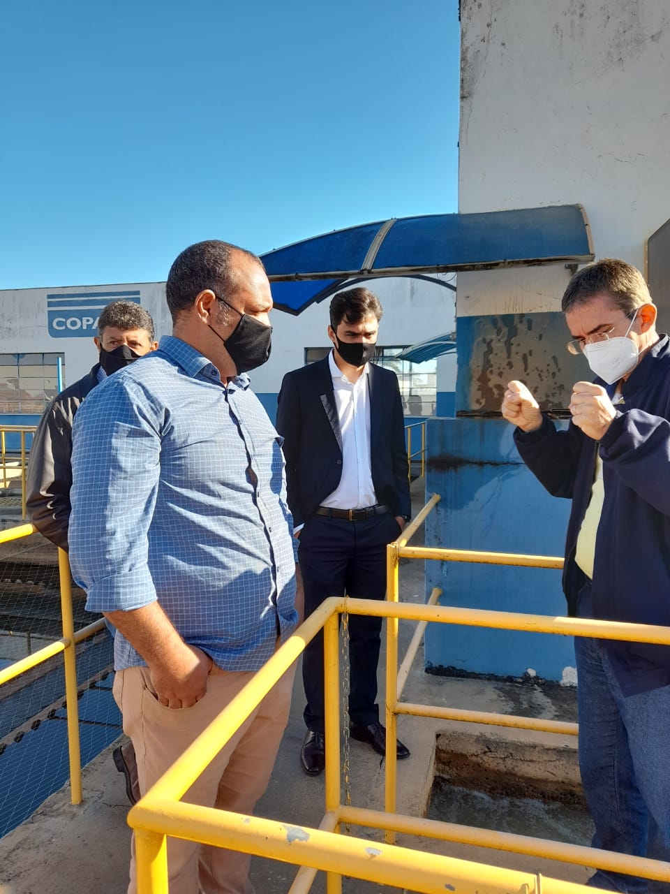 Os membros da Comissão Temporária de Recursos Hídricos, Hidrossanitários e assuntos relativos à Copasa, vereadores João Batista de Oliveira – João Marra (presidente), João Batista Gonçalves – Cabo Batista e José Eustáquio de Faria Júnior, visitaram a Companhia Mineira de Água e Esgoto - Copasa de Patos de Minas, nessa quarta-feira (5/5), para conhecer in loco o sistema de abastecimento de água e tratamento de esgoto na cidade e nos distritos, bem como cobrar respostas para as demandas da população. O encontro também contou com a presença do diretor-geral da Casa Legislativa, Hugo Messias, e dos assessores parlamentares Júlia Marques e Ivan Soares.