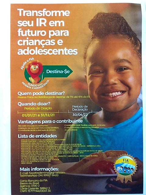 * Vantagens para o contribuinte: Não existe ônus para os contribuintes; a dedução não exclui nem reduz outros benefícios; o contribuinte decide a destinação do dinheiro; o contribuinte pode fiscalizar a aplicação do recurso; e o valor contribuído é revertido em benefício da comunidade. Para mais informações, a captadora de recursos disponibiliza o número de celular/WhatsApp (34) 9 9987 – 8420.