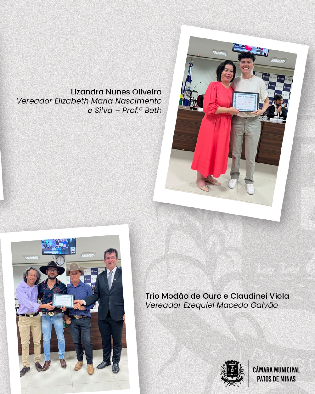 E, assim, o Trio Modão de Ouro e Claudinei Viola contribuem e continuarão contribuindo para a cultura sertaneja da música raiz em nossa região, exaltando o meio rural e resgatando, de forma bem simplificada, o dia a dia do homem do campo, sendo, por tudo isso, merecedores do Diploma de Mérito Cultural “Francisco Melgaço de Faria - Chiquito”.