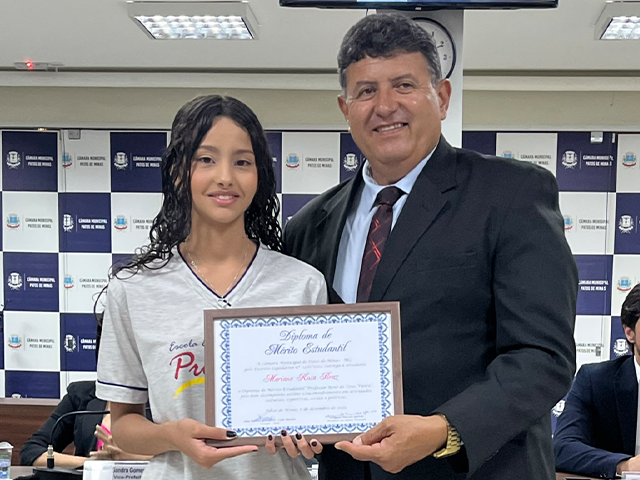 A Câmara Municipal de Patos de Minas outorgou, nessa terça-feira (6/12), o Diploma de Mérito Estudantil “Professor René de Deus Vieira” a 13 estudantes do Município que se destacam pelo bom desempenho escolar anual e pelo envolvimento em atividades culturais, esportivas, sociais e políticas.