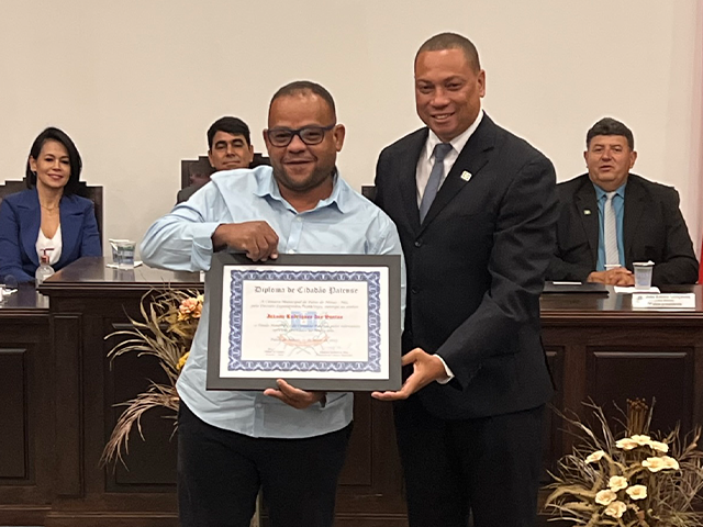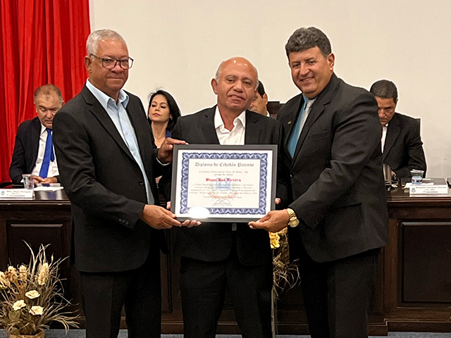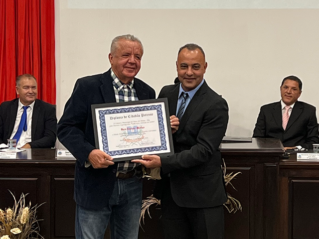 Como parte das comemorações do aniversário de 131 anos de Patos de Minas, a Câmara Municipal outorgou, durante sessão solene realizada na noite de segunda-feira (22/5), no salão do Júri do Unipam, o Título Honorífico de Cidadão Patense a 20 personalidades não nascidas em Patos de Minas, que contribuem para o desenvolvimento do Município. Além dos títulos de 2023, foram entregues os títulos de 2019 e 2020 para os cidadãos que não receberam o diploma em data oportuna. Toda a solenidade foi traduzida e interpretada na Linguagem Brasileira de Sinais - Libras.