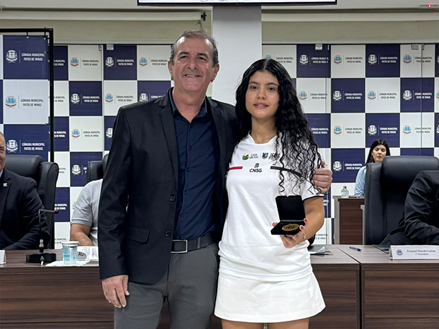 Representando os homenageados, a atleta Lorrane Cristina Oliveira Neves discursou sobre a importância do esporte em diversos aspectos – físico, social, emocional e educacional – e destacou a influência dos homenageados dentro e fora de Patos de Minas: