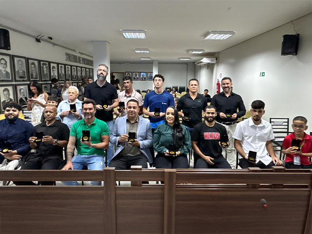 Ao final da cerimônia, o presidente da Casa Legislativa, vereador Cabo Batista, ressaltou o papel fundamental de cada homenageado “para o fortalecimento do esporte em nosso município e região, utilizando a prática esportiva como um poderoso instrumento de transformação social, inclusão e desenvolvimento”. E concluiu: