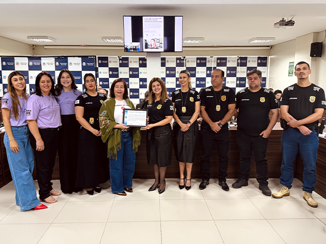 E, assim, a Delegacia Especializada de Atendimento à Mulher de Patos de Minas está recebendo este merecido diploma de Moção de Aplausos pelos relevantes serviços prestados à nossa comunidade no combate à violência doméstica, familiar e sexual, bem como na proteção dos direitos das mulheres, crianças, adolescentes, idosos e pessoas com deficiência.