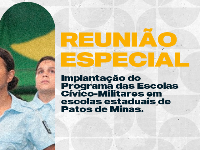 Na ocasião, o superintendente regional de Ensino, Carlos Coimbra, estará à disposição para esclarecer dúvidas sobre a proposta da Secretaria de Estado de Educação de Minas Gerais (SEE/MG) referente à possível implantação do Programa das Escolas Cívico-Militares em escolas estaduais do município.