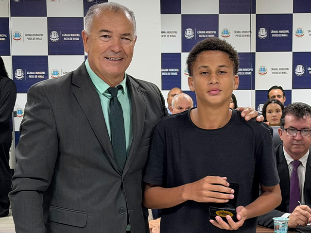 A Câmara Municipal de Patos de Minas realizou, na noite dessa terça-feira (7/4), uma sessão especial para a outorga da terceira edição da Medalha de Mérito Antônio de Pádua Teixeira "Pão". A honraria, destinada a destacar o "Destaque Esportivo do Ano", reuniu autoridades, atletas e a comunidade para celebrar o papel transformador do esporte. A data faz alusão ao Dia Internacional do Esporte para o Desenvolvimento e pela Paz, comemorado em 6 de abril.
